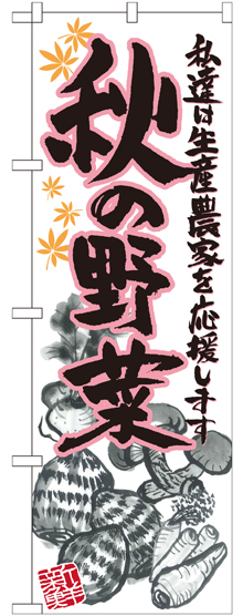 店舗やお店を盛り上げるのぼり旗。表示内容は、秋の野菜 イラストです。