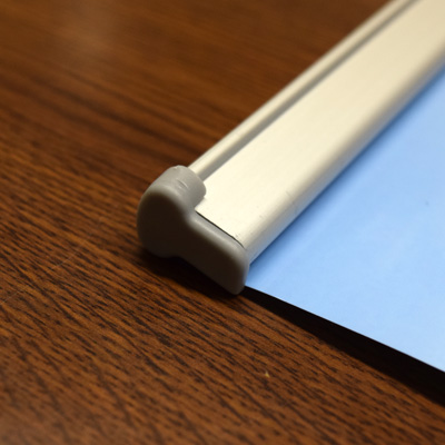 バナースタンドは印刷メディアを掛け軸のように取り付けて支柱を立てて自立させるスタンド看板なので部材もシンプル。上下のバーと支柱のみになります。また、上下のバーの左右にはエンドキャップが付いておりますのでこちらのエンドキャップがあるかどうかも念のためご確認ください。