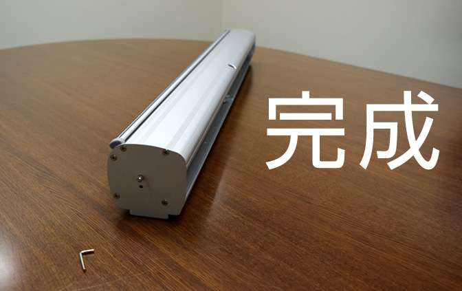 これでロールスクリーンバナー楽幕の取り付けは完成です。