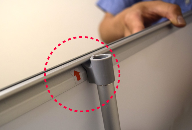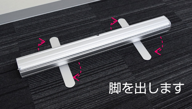 初めに、バナースタンド本体ウラ面の脚をスライドして展開します。
