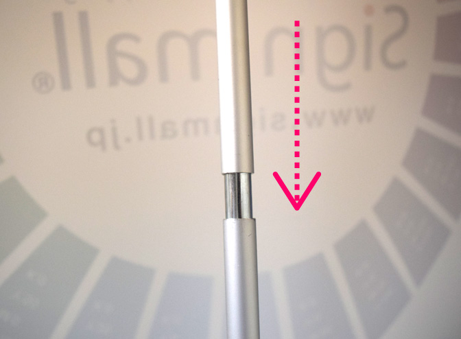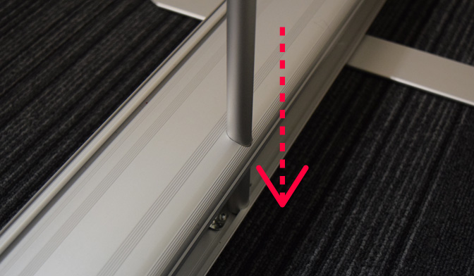 最後に、バナースタンド本体に開いている穴に支柱を底まで通します。