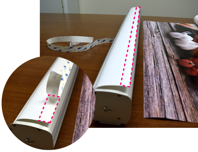 これで、バナー本体下部と印刷メディア下部との取り付けは完了です。