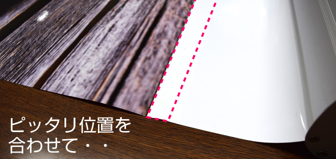十分にスペースのある卓上でピッタリ位置を合わせて貼る位置を確認します。