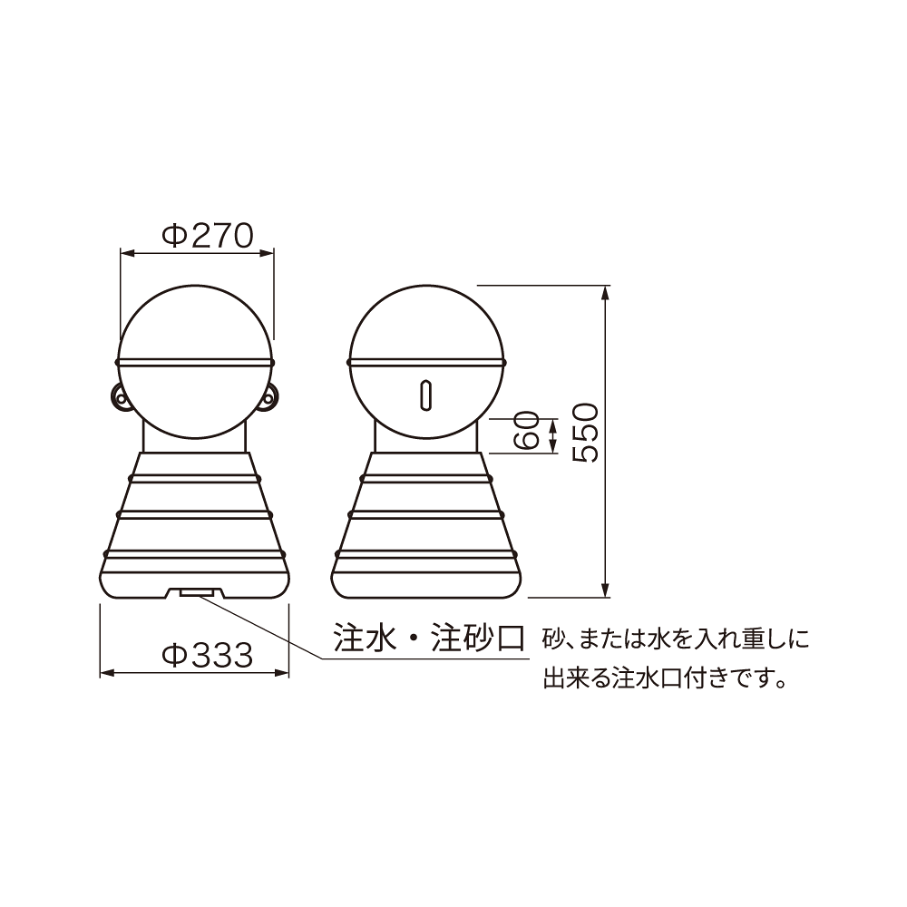 - 本体内部に水はもちろん、砂を入れて重量を増やすことができます。砂満了時(約)32Kg程度まで重量が増します。
