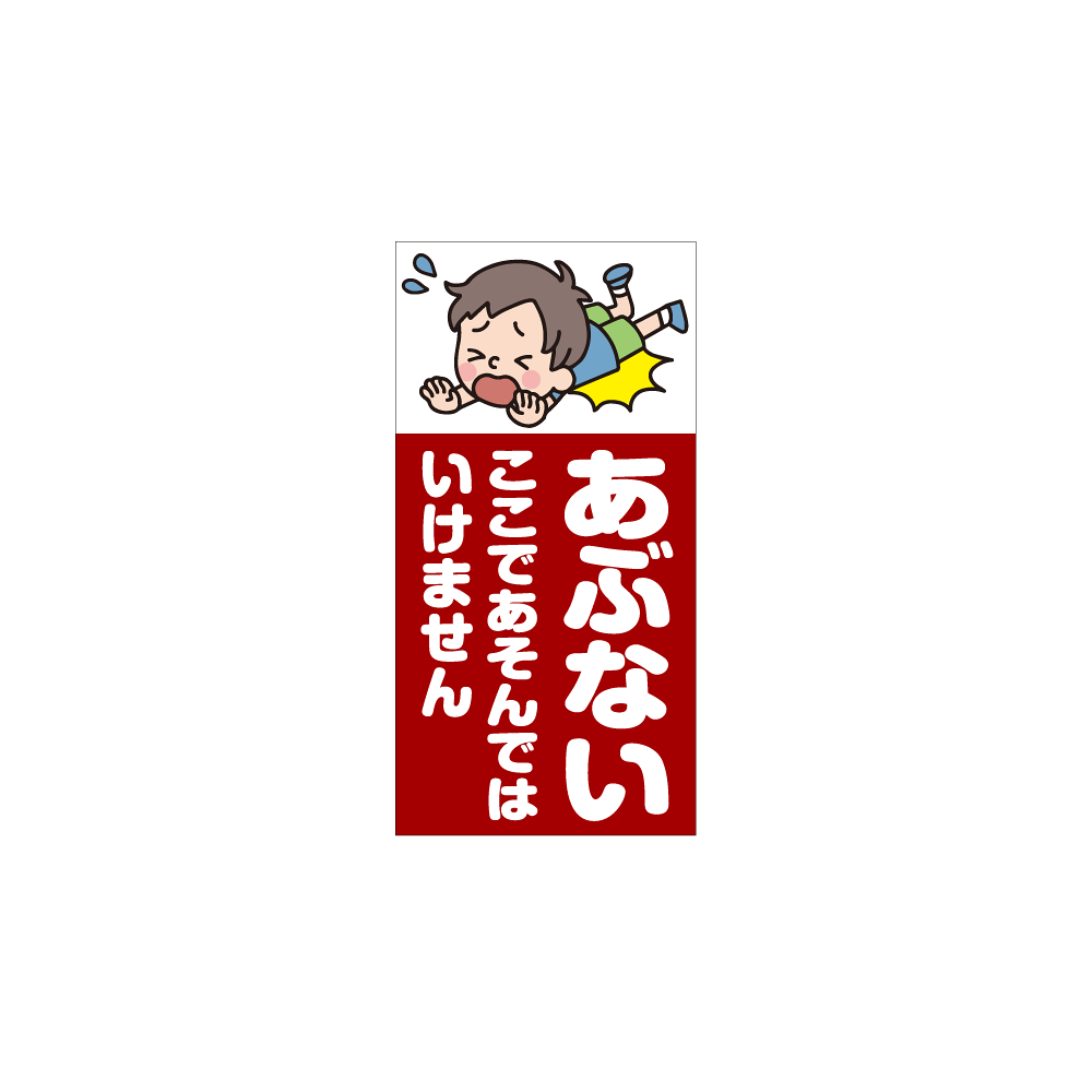 子供の遊びを禁止する標識看板。柔らかいイラストとひらがな文字で子供にも分かりやすいデザインです。