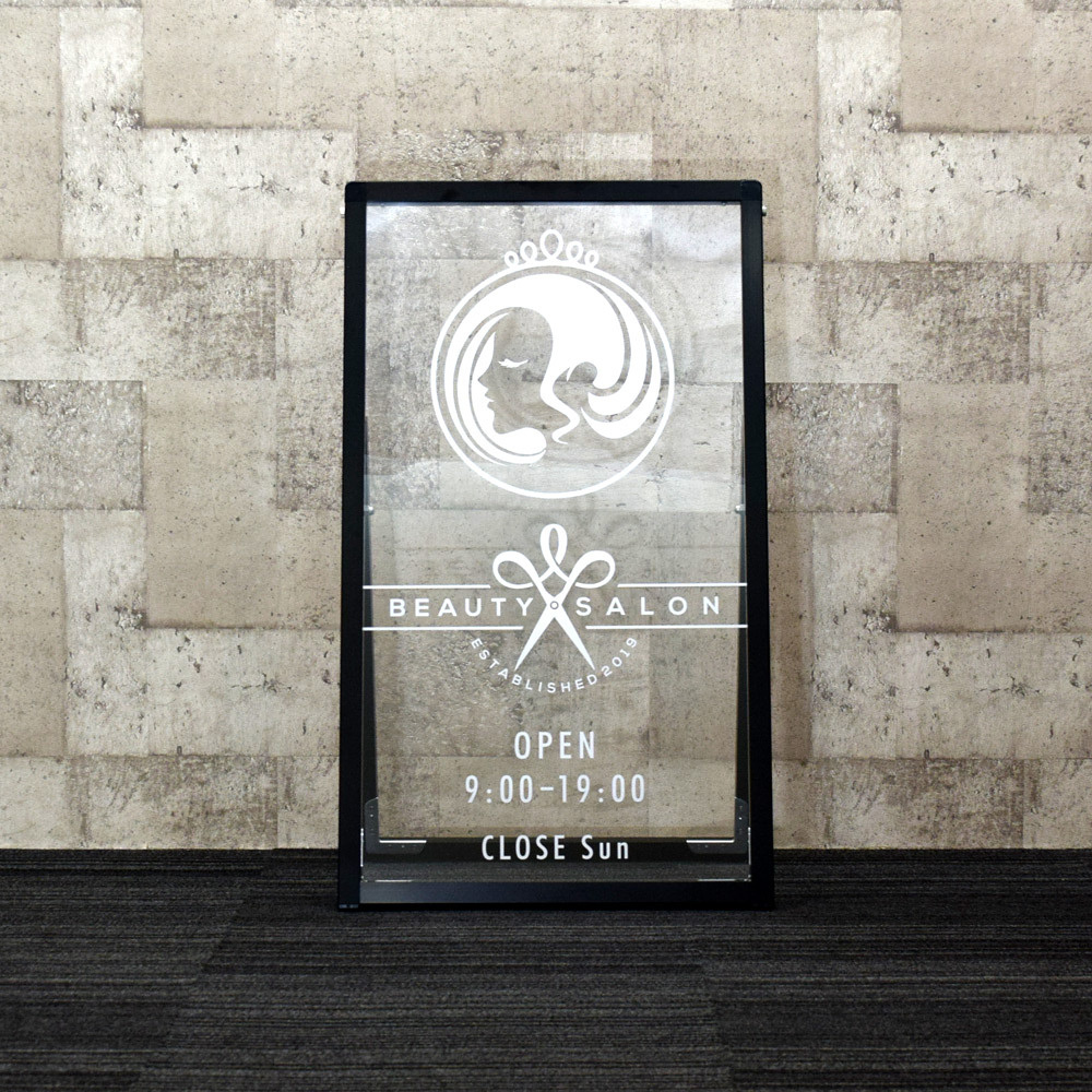 - 表示面はクリアな透明アクリル板なのでカッティングシート(切文字加工)での表示面製作がオススメです。サインモールでも表示面の製作を承っておりますのでお気軽にお問い合わせください。