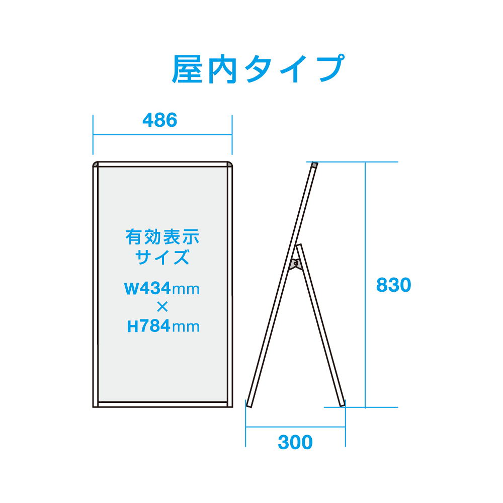 - 表示面サイズは幅450mm(45cm)×H600mm(60cm)の店頭看板では少し小型のサイズ。出し入れも簡単で使い勝手の良いちょうど良いサイズです。