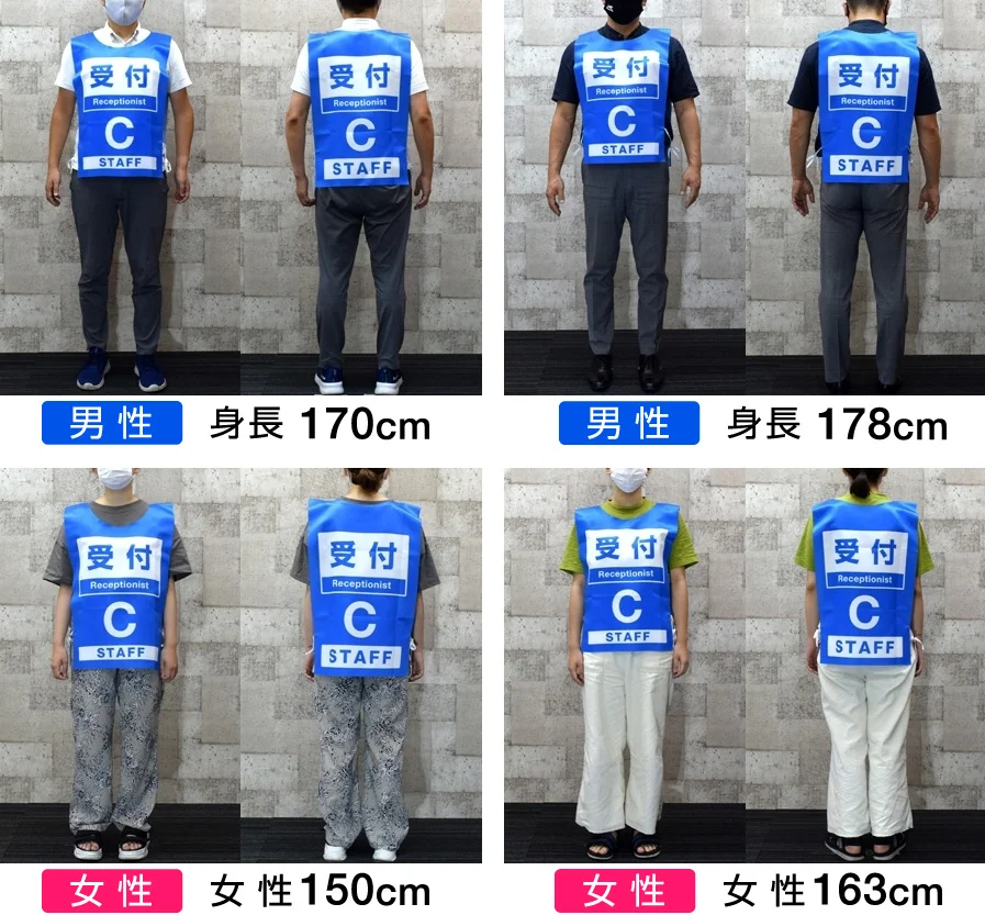 ■着用例(生地:メッシュ)【男性170cm】※デザインはワクチン接種会場向け「受付・イエロー」