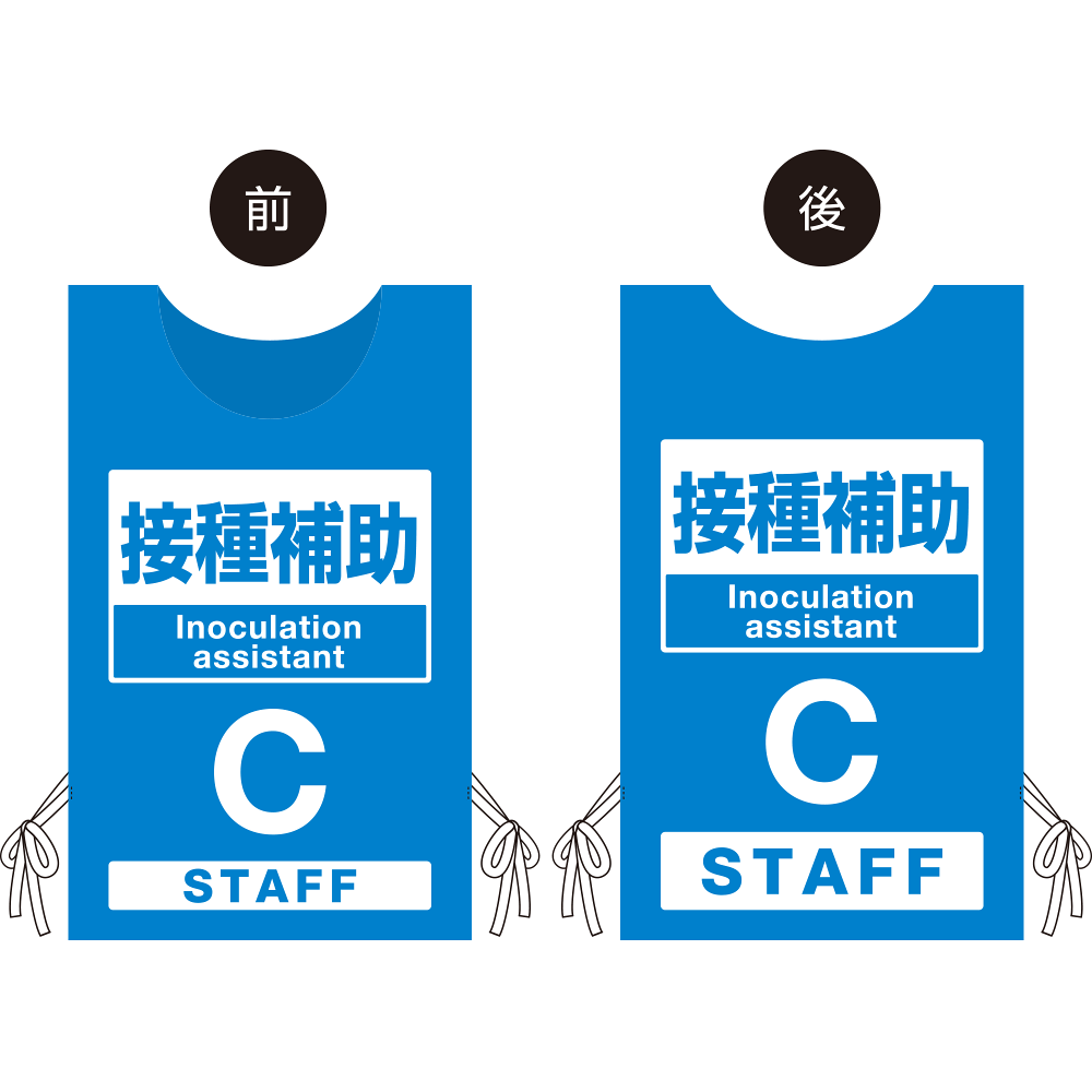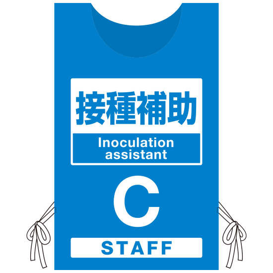 - プロモウェアでワクチン接種会場の円滑な運営をサポートします!役割ごとに分かりやすく表示したウェアで来場者のスムーズな誘導に寄与します。
