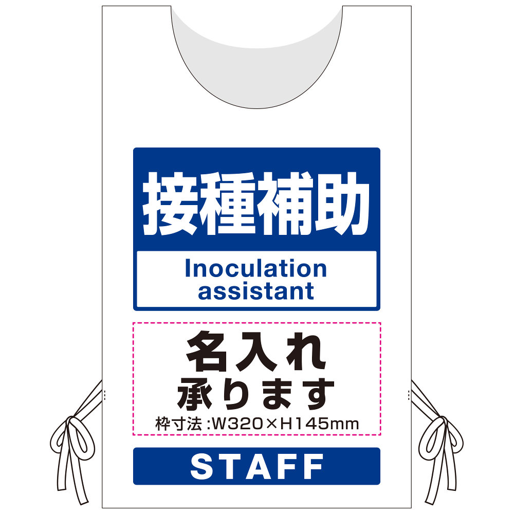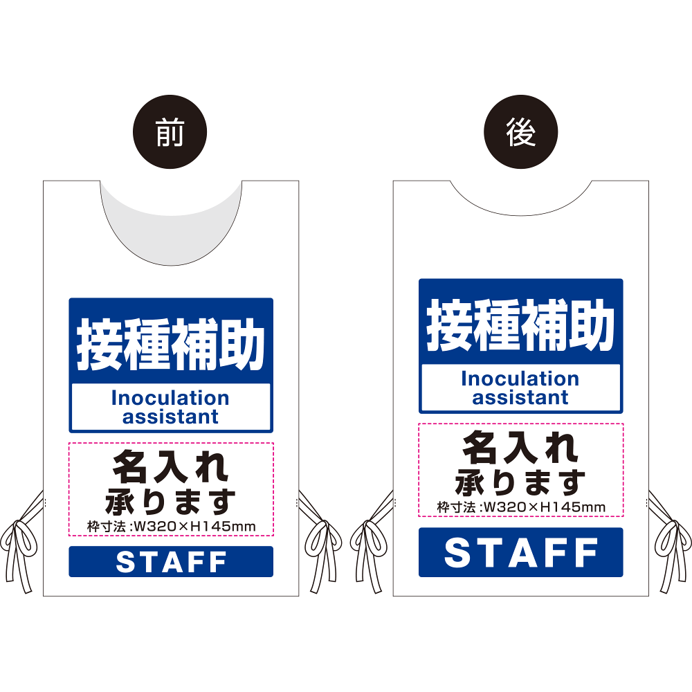 名入れスペースにお好きな名称をお入れして印刷・製作いたします。ワクチン接種会場向けプロモウェア(C)