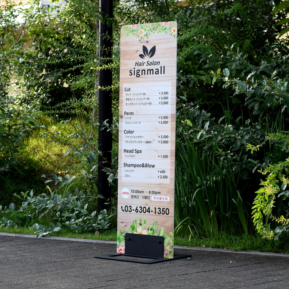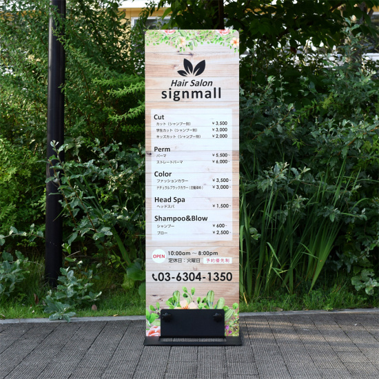 サインモール オリジナル フラットパネルスタンド 本体のみ(板面なし) を使った看板デザイン例のご紹介!