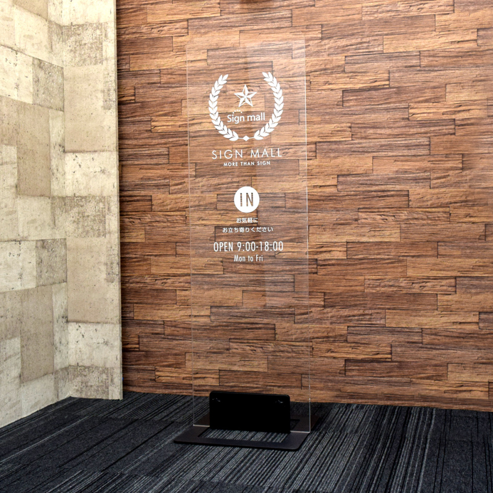 - 屋外でフレームレスのスタイリッシュな看板をお作りいただけます。
