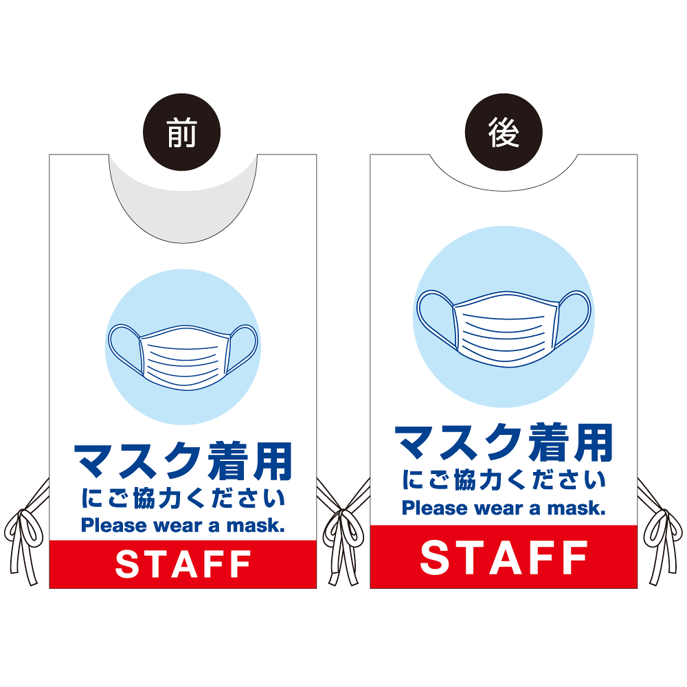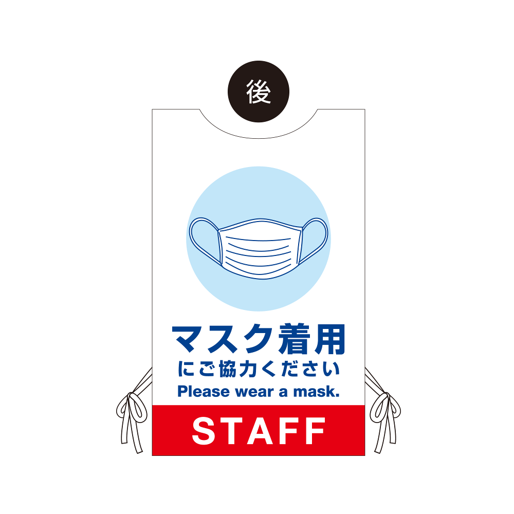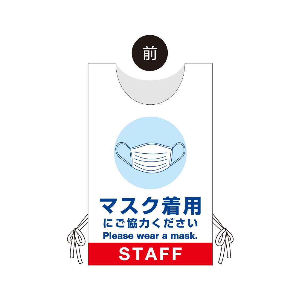 - 看板や表示プレートと違い、実際に「人」が着るのでアイキャッチ効果抜群!感染症対策の「見える化」にも大きく貢献します。