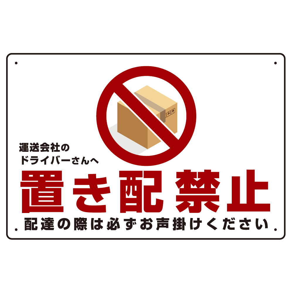 置き配禁止 ピクトマーク付赤文字 オリジナル プレート看板 W450×H300 エコユニボード (SP-SMD396-45x30U)