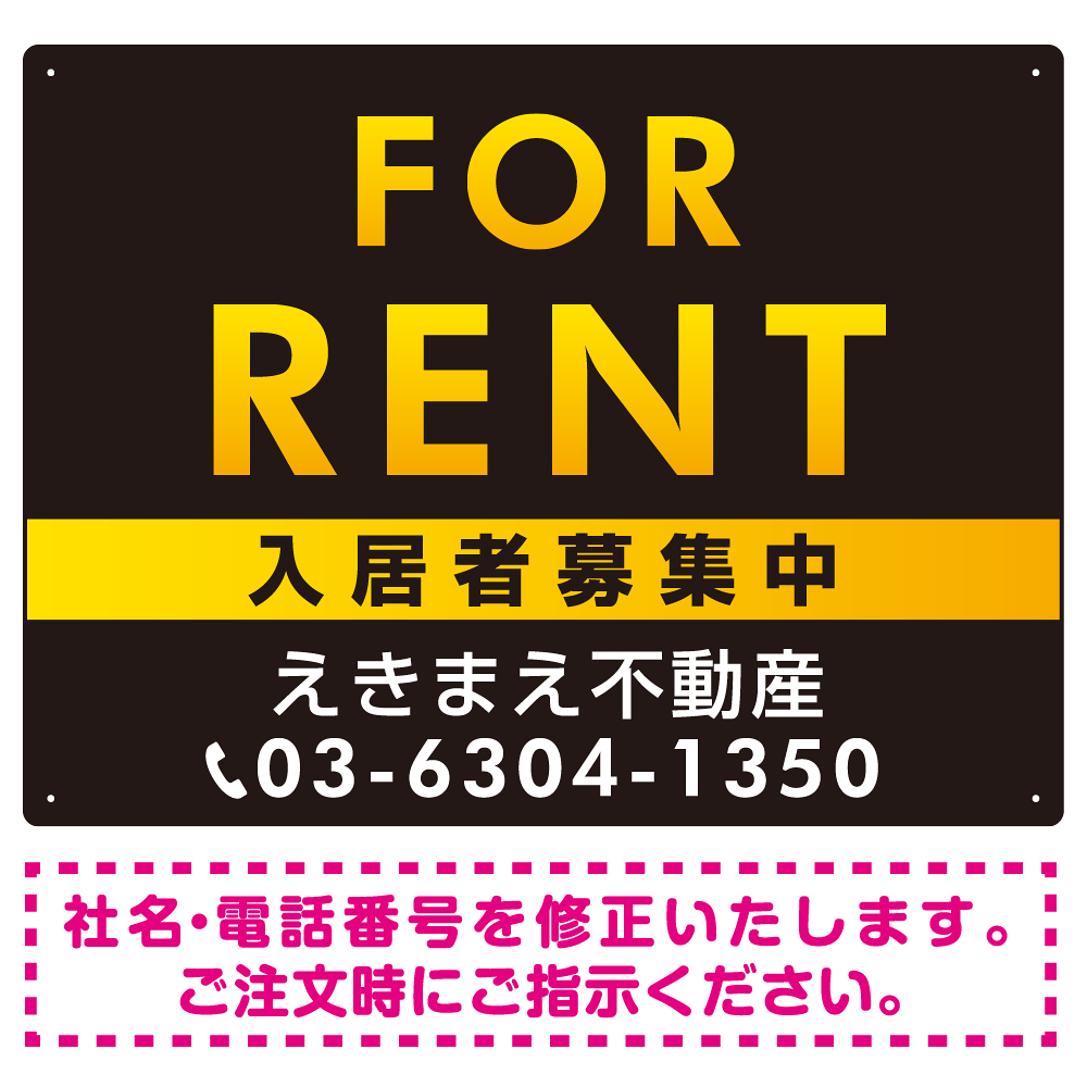 商品説明:FOR RENT 入居者募集中 黒地/イエローグラーデションタイトル オリジナル プレート看板 W600×H450 エコユニボード (SP-SMD410C-60x45U)