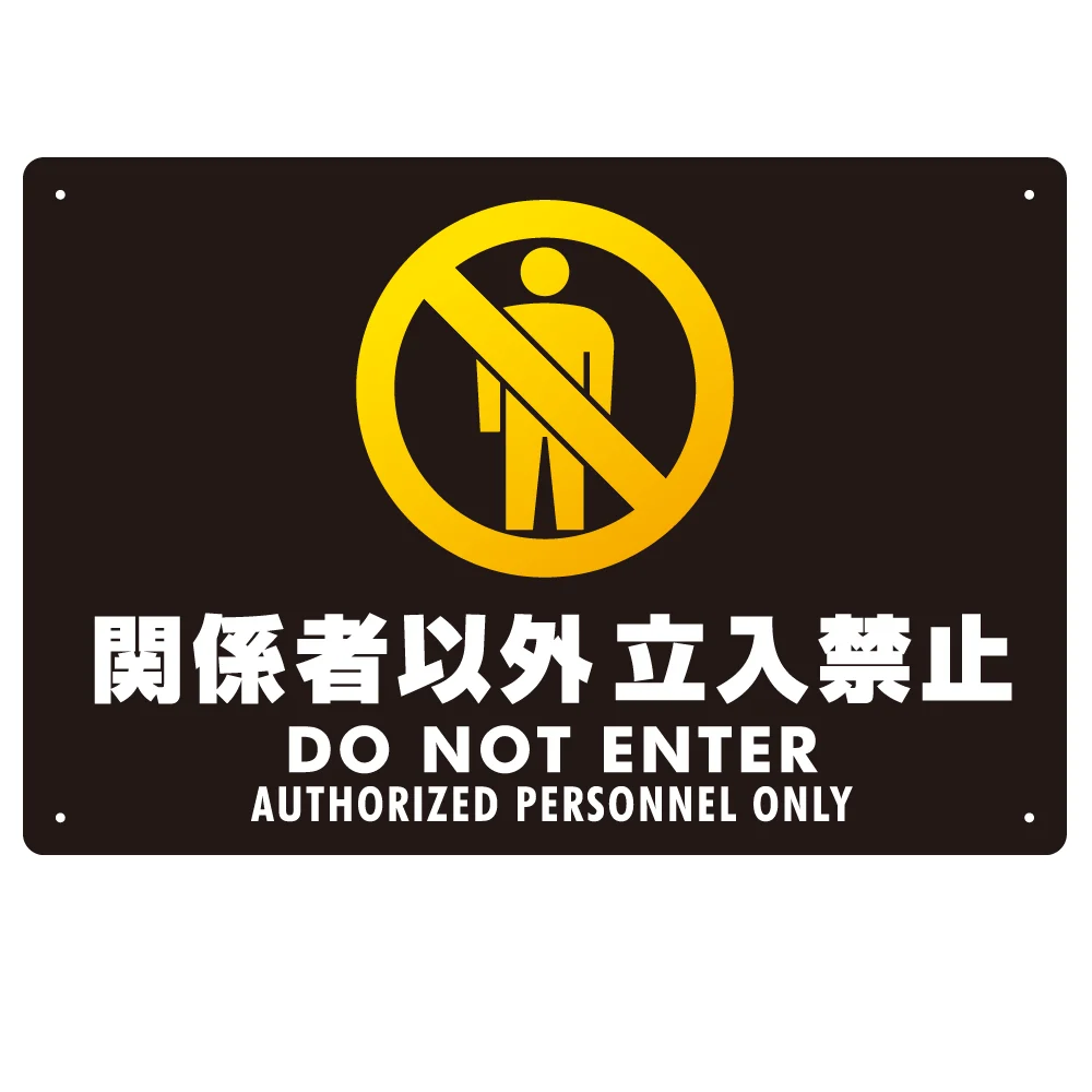 - 関係者以外立入禁止 ヨコ型 ブラック/イエロー オリジナル プレート看板
