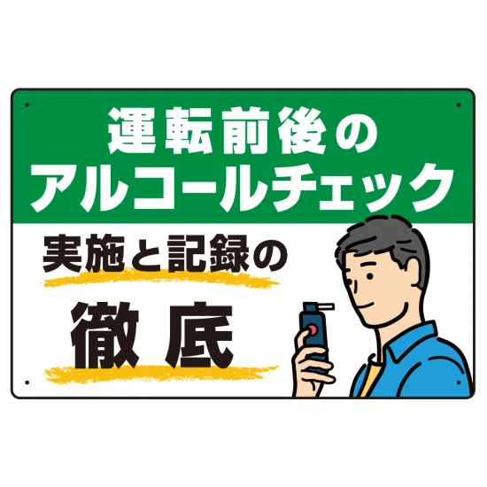 飲酒運転防止・アルコールチェック啓蒙看板 管理と徹底 グリーン オリジナル プレート看板 W450×H300 エコユニボード の商品詳細