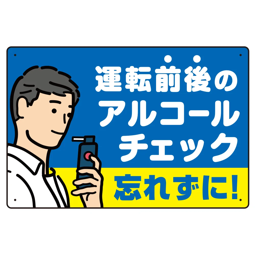 「飲酒運転防止・アルコールチェック 忘れずに ブルー オリジナル プレート看板 W450×H300 エコユニボード」の導入をご検討中ですか? 大量注文・複数台のご検討に応じたお見積りのご相談、最短納期や送料、仕様・サイズの確認など、 アルコールチェック義務化啓蒙看板選びをまとめてサポートいたします。