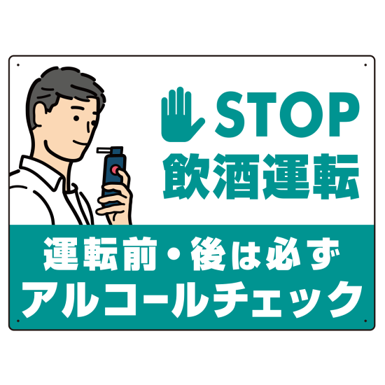 STOP飲酒運転 アルコールチェック イラスト エメラルドグリーン オリジナル プレート看板 W600×H450 エコユニボード