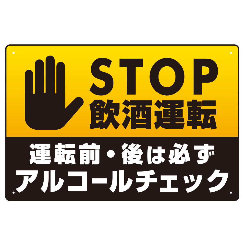 STOP!飲酒運転。大きな表示で注意を促し、アルコールチェックの徹底をPR。