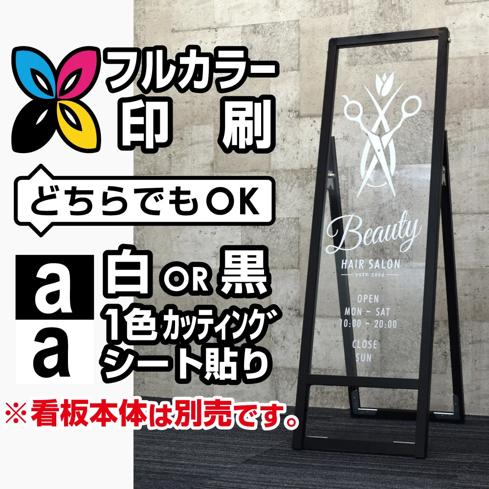 ショップサインスタンド【スリムタイプ】用印刷制作費 透明シート出力+UV光沢ラミor切文字(白黒1色)製作 ※看板本体別売
