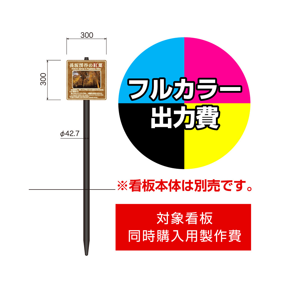打込杭 リーフ LCO-3030 (W300×H300)用印刷制作費 IJ出力+UVマットラミネート加工込 【片面印刷】 ※看板本体別売※取付施工費含まず