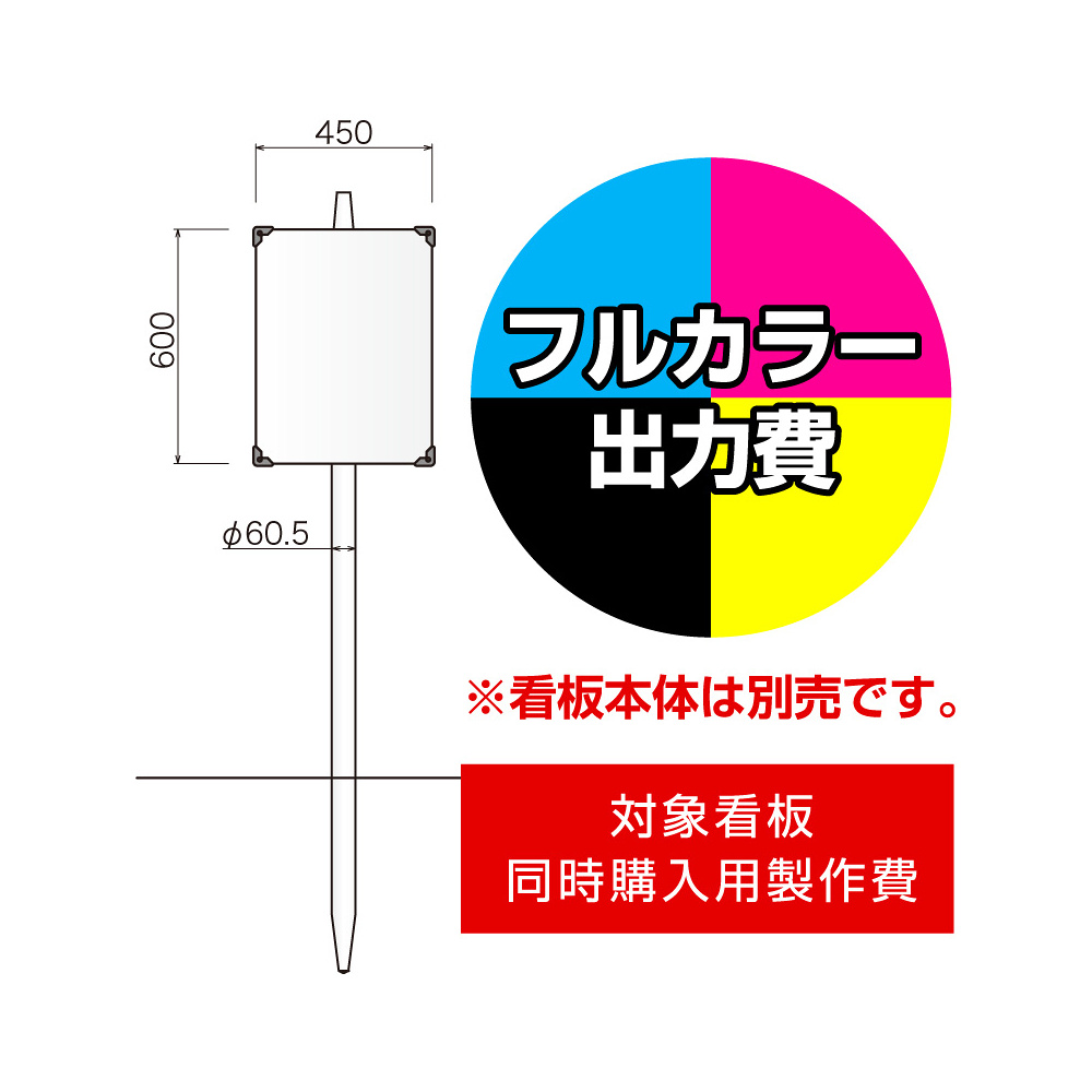 打込杭 コンパス KCO-4560(W450×H600)用印刷制作費 IJ出力+UVマットラミネート加工込 【片面印刷】 ※看板本体別売 ※取付施工費含まず