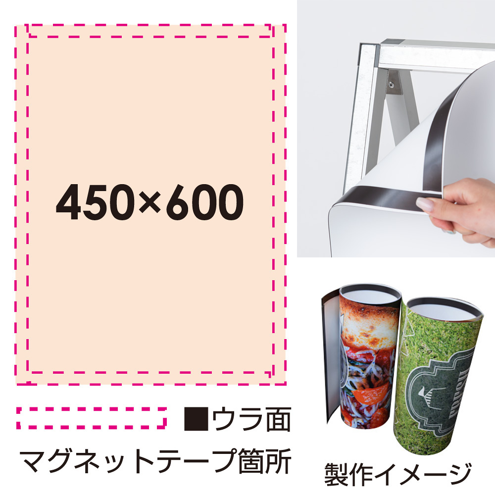 商品説明:エシカルスタンド W450×H600用印刷制作費 IJ出力+UVマットラミ+周囲マグネットテープ加工込 【片面印刷】※看板本体別売 ※個別発送