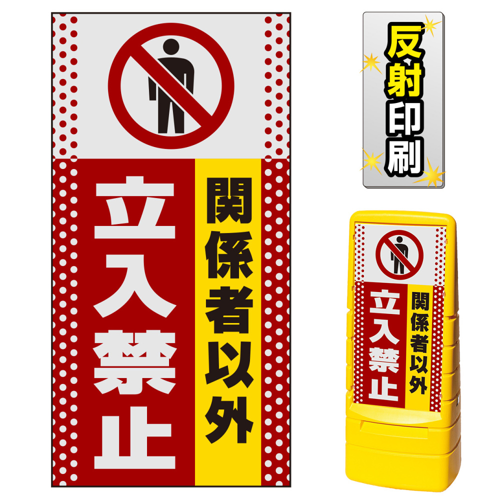 商品説明:マルチポップサイン用面板のみ(※本体別売) ドット柄 関係者以外立入禁止 片面 反射出力 (MPS-SMD110-H(1))
