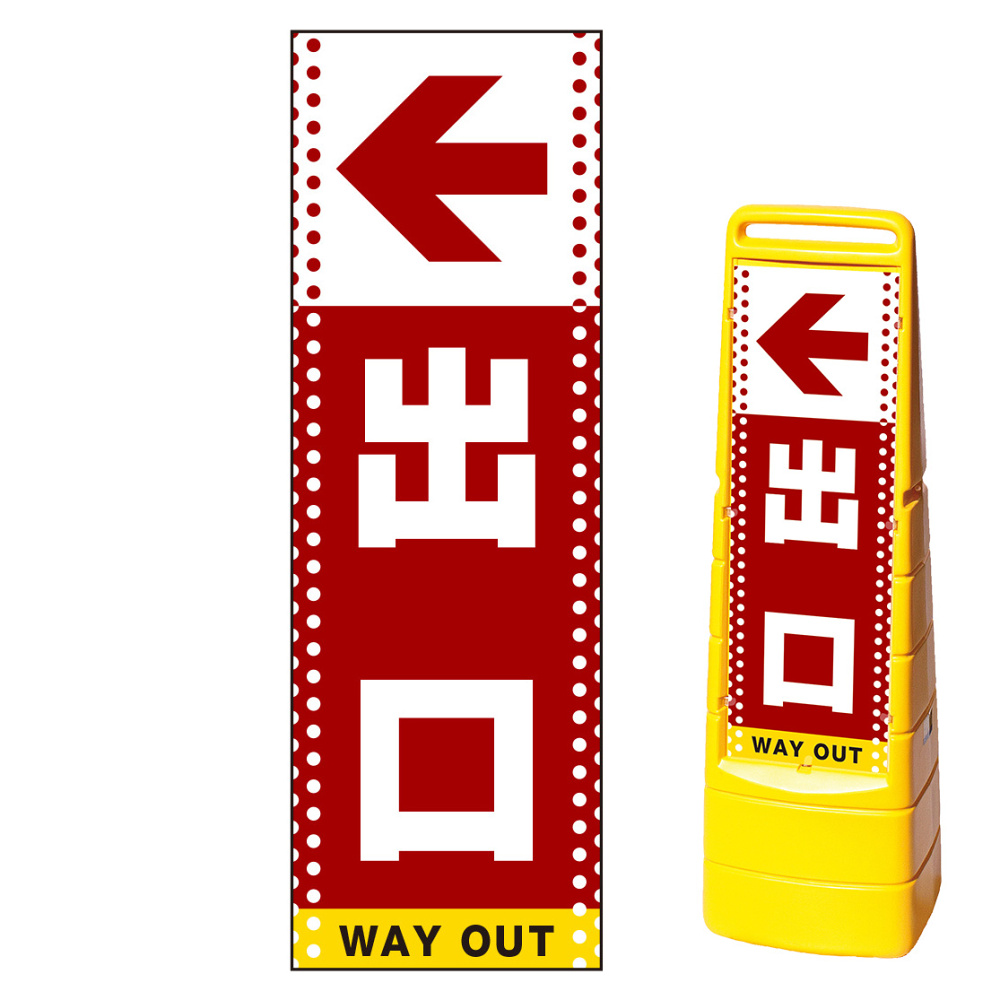 商品説明:マルチクリッピングサイン用面板のみ(※本体別売) ドット柄 左矢印+出口 片面 通常出力 (MCS-SMD133-S(1))