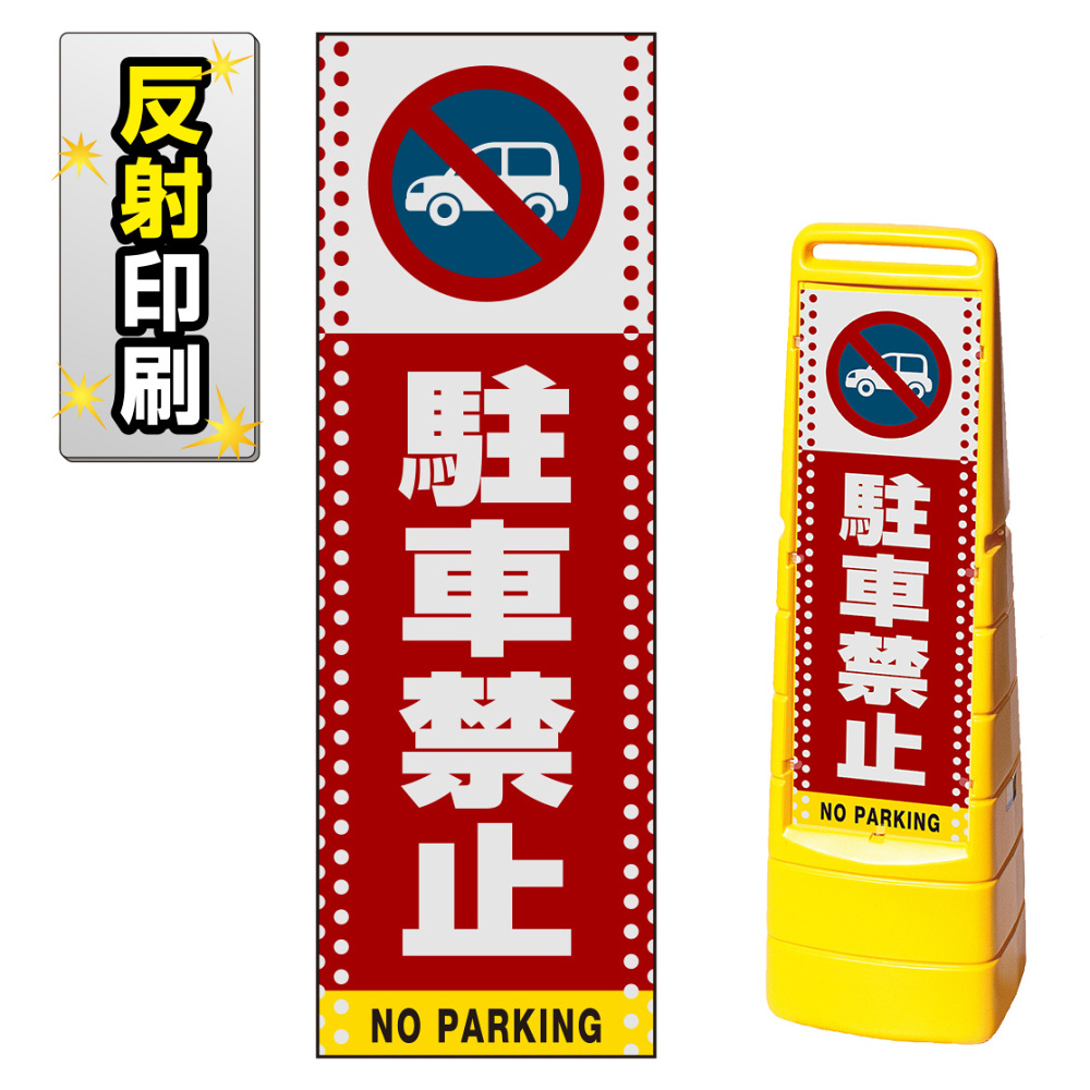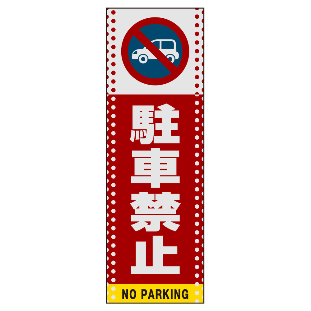 商品説明:マルチクリッピングサイン用面板のみ(※本体別売) ドット柄 駐車禁止 (車マーク) 片面 反射出力 (MCS-SMD105-H(1))