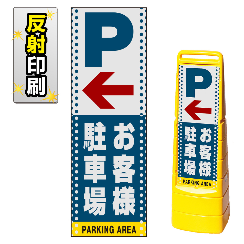 商品説明:マルチクリッピングサイン用面板のみ(※本体別売) ドット柄 左矢印+お客様駐車場 片面 反射出力 (MCS-SMD123-H(1))