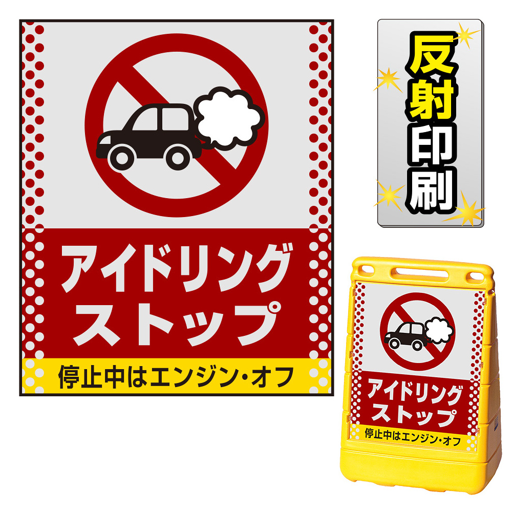 バリアポップサイン用面板のみ(※本体別売) ドット柄 アイドリング禁止 片面 反射出力 (BPS-SMD105-H(1))
