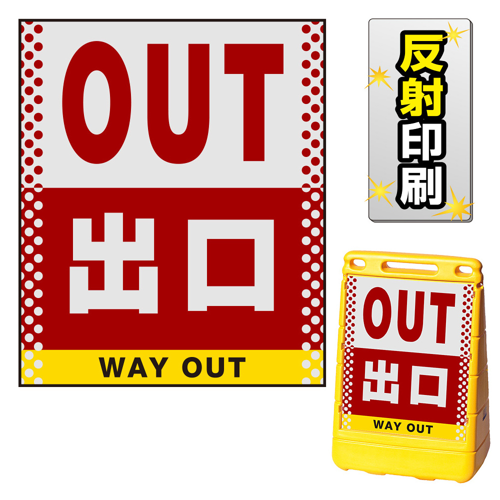 商品説明:バリアポップサイン用面板のみ(※本体別売) ドット柄 出口 片面 反射出力 (BPS-SMD111-H(1))