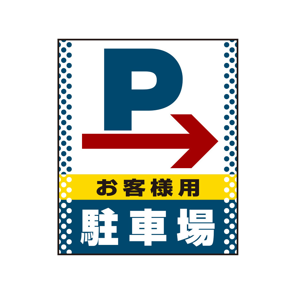商品説明:バリアポップサイン用面板のみ(※本体別売) ドット柄 右矢印+お客様駐車場 片面 通常出力 (BPS-SMD126-S(1))