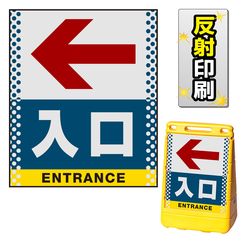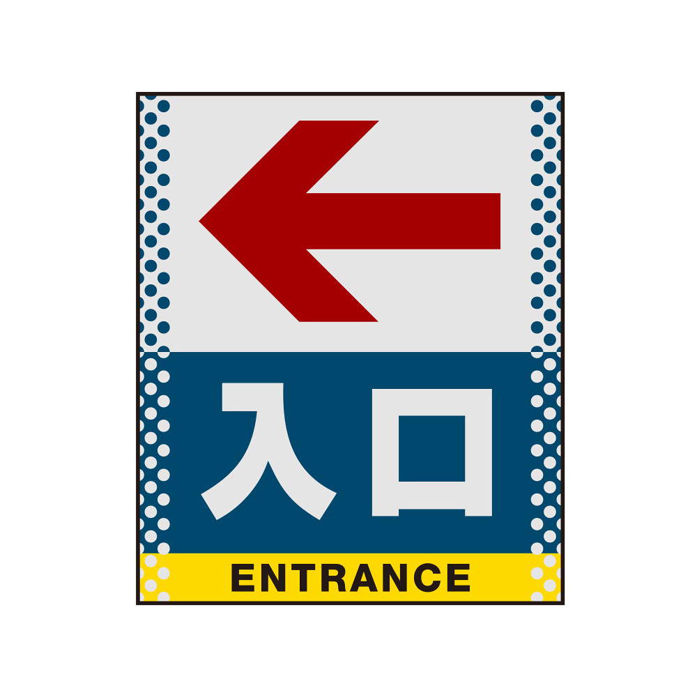 商品説明:バリアポップサイン用面板のみ(※本体別売) ドット柄 左矢印+入口 片面 反射出力 (BPS-SMD132-H(1))