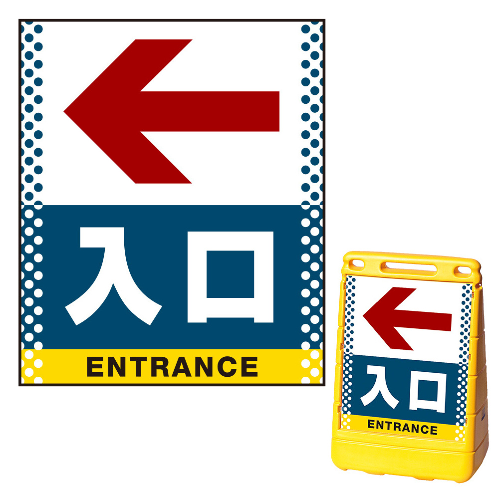 商品説明:バリアポップサイン用面板のみ(※本体別売) ドット柄 左矢印+入口 片面 通常出力 (BPS-SMD132-S(1))