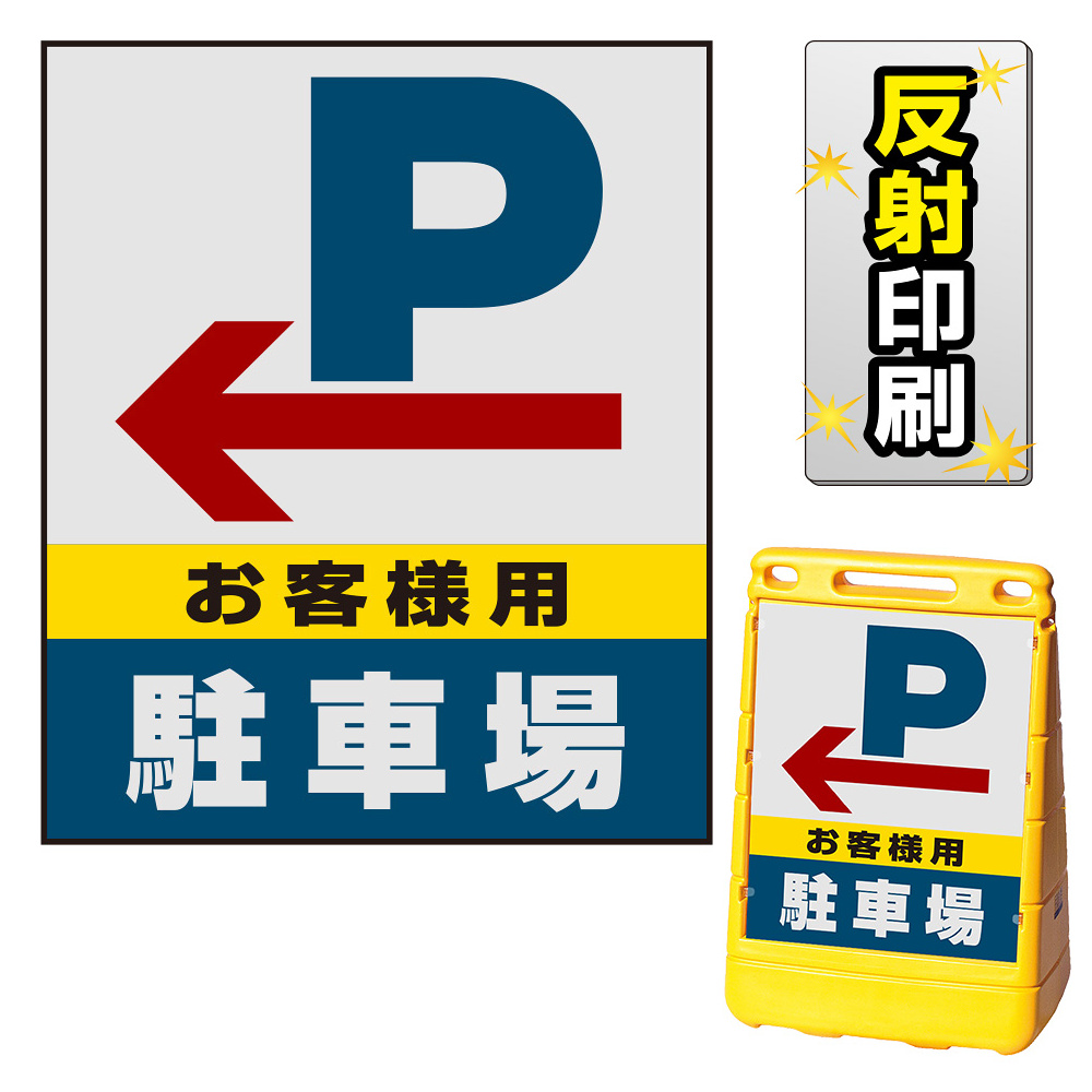 バリアポップサイン用面板のみ(※本体別売) 左矢印+お客様駐車場 片面 反射出力 (BPS-SMD225-H(1))
