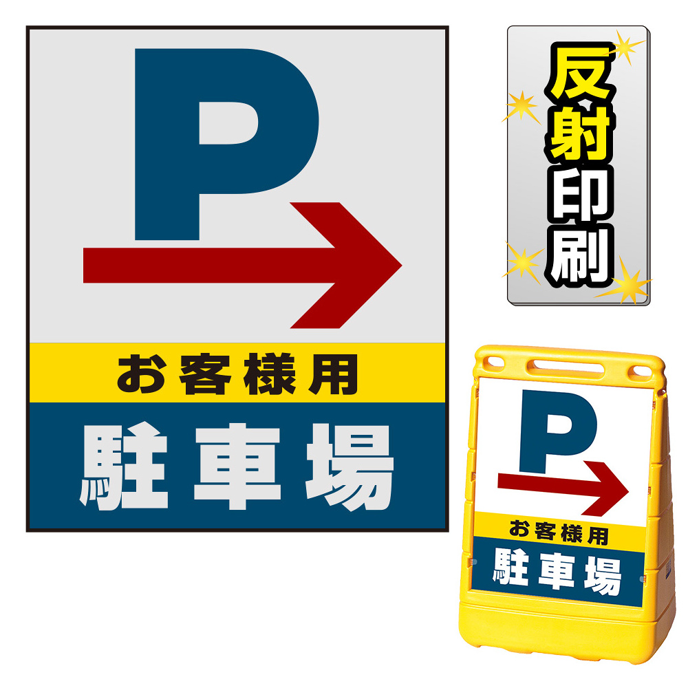 バリアポップサイン用面板のみ(※本体別売) 右矢印+お客様駐車場 片面 反射出力 (BPS-SMD226-H(1))
