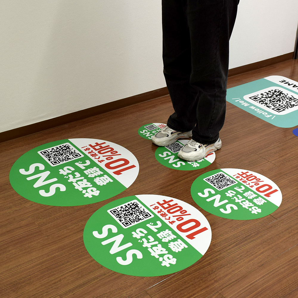 オリジナル 床貼りシール フロアステッカー 丸型 Φ500 (OFS-500)を実際にご利用いただいたお客様の声や、使用感に関するレビュー・評価をご紹介しています。