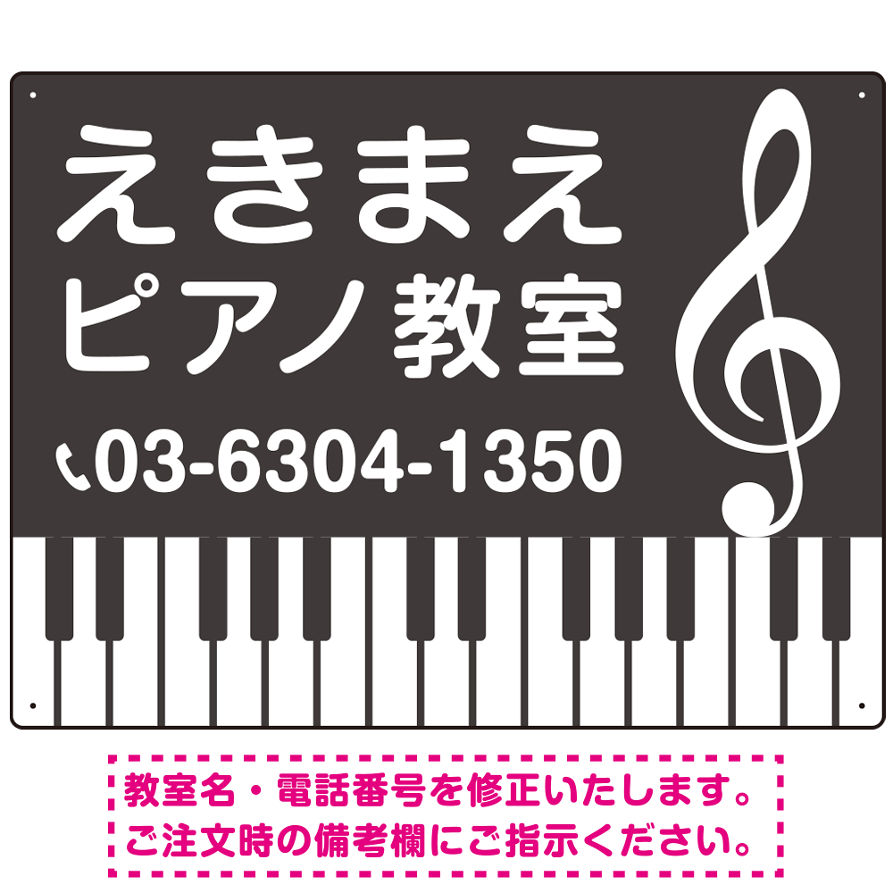 ピアノ教室 定番の下部鍵盤デザイン プレート看板 ダークグレー W600×H450 アルミ複合板 (SP-SMD441A-60x45A)