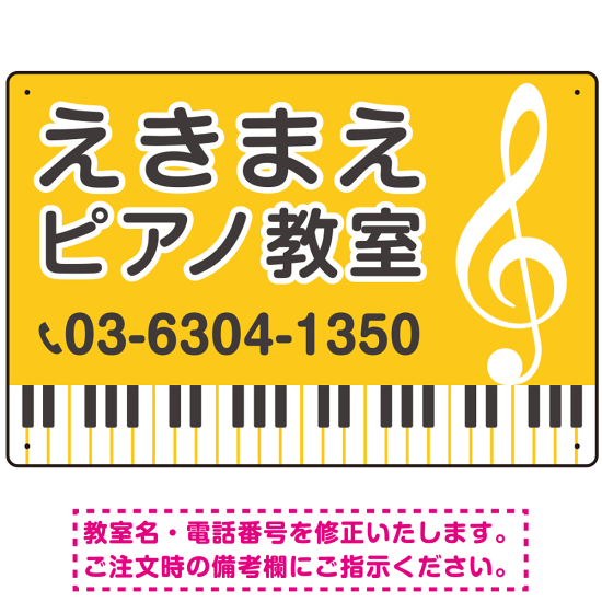 ピアノ教室 定番の下部鍵盤デザイン プレート看板 イエロー W450×H300 アルミ複合板 (SP-SMD441B-45x30A)