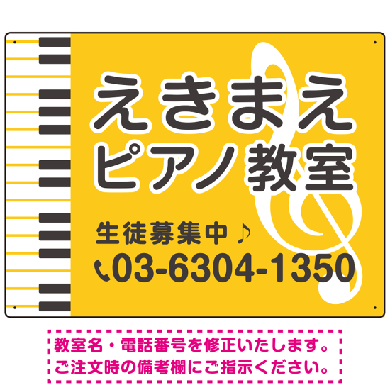 商品説明:ピアノ教室 定番のヨコ鍵盤デザイン プレート看板 イエロー W600×H450 エコユニボード (SP-SMD442B-60x45U)