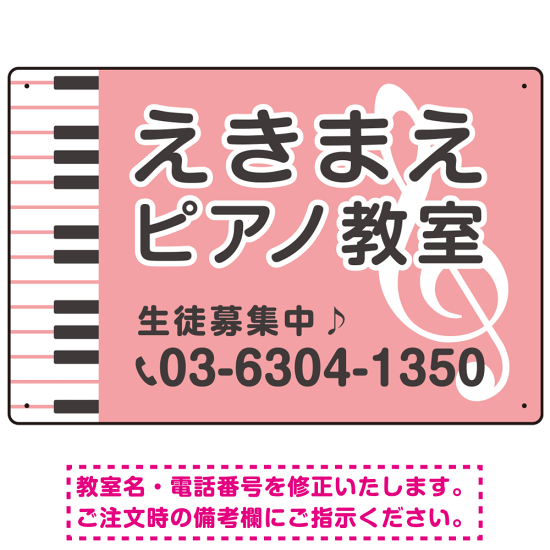 ピアノ教室 定番のヨコ鍵盤デザイン プレート看板 ピンク W450×H300 エコユニボード (SP-SMD442E-45x30U)