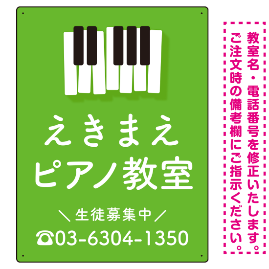 タテ型 ピアノ教室 かわいい鍵盤イラストデザイン プレート看板 グリーン W600×H450 アルミ複合板 (SP-SMD451B-60x45A)