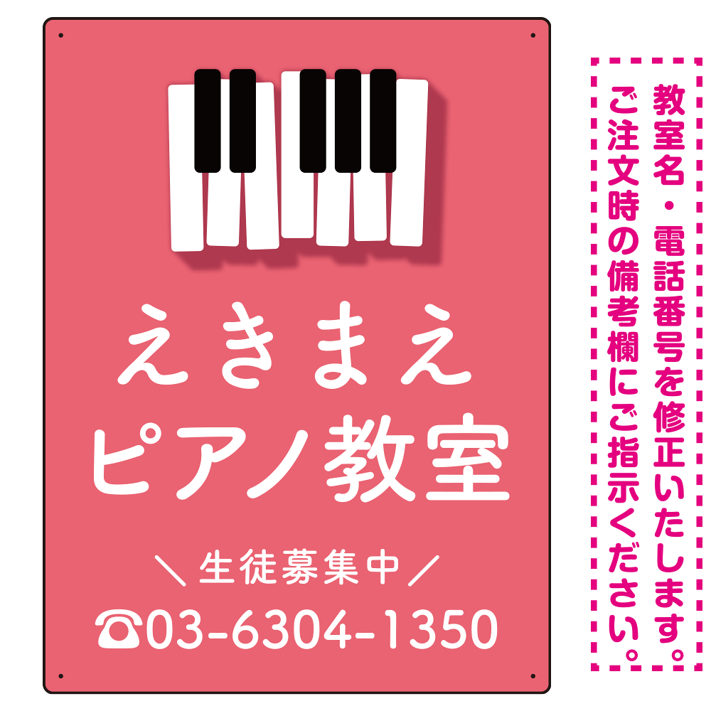 - ご希望の文字内容をご注文時の備考欄やメールやFAXにてご指示ください。※教室名・電話番号の修正費は料金に含まれております。