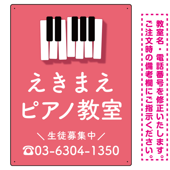 タテ型 ピアノ教室 かわいい鍵盤イラストデザイン プレート看板 ピンク W600×H450 アルミ複合板 (SP-SMD451D-60x45A)