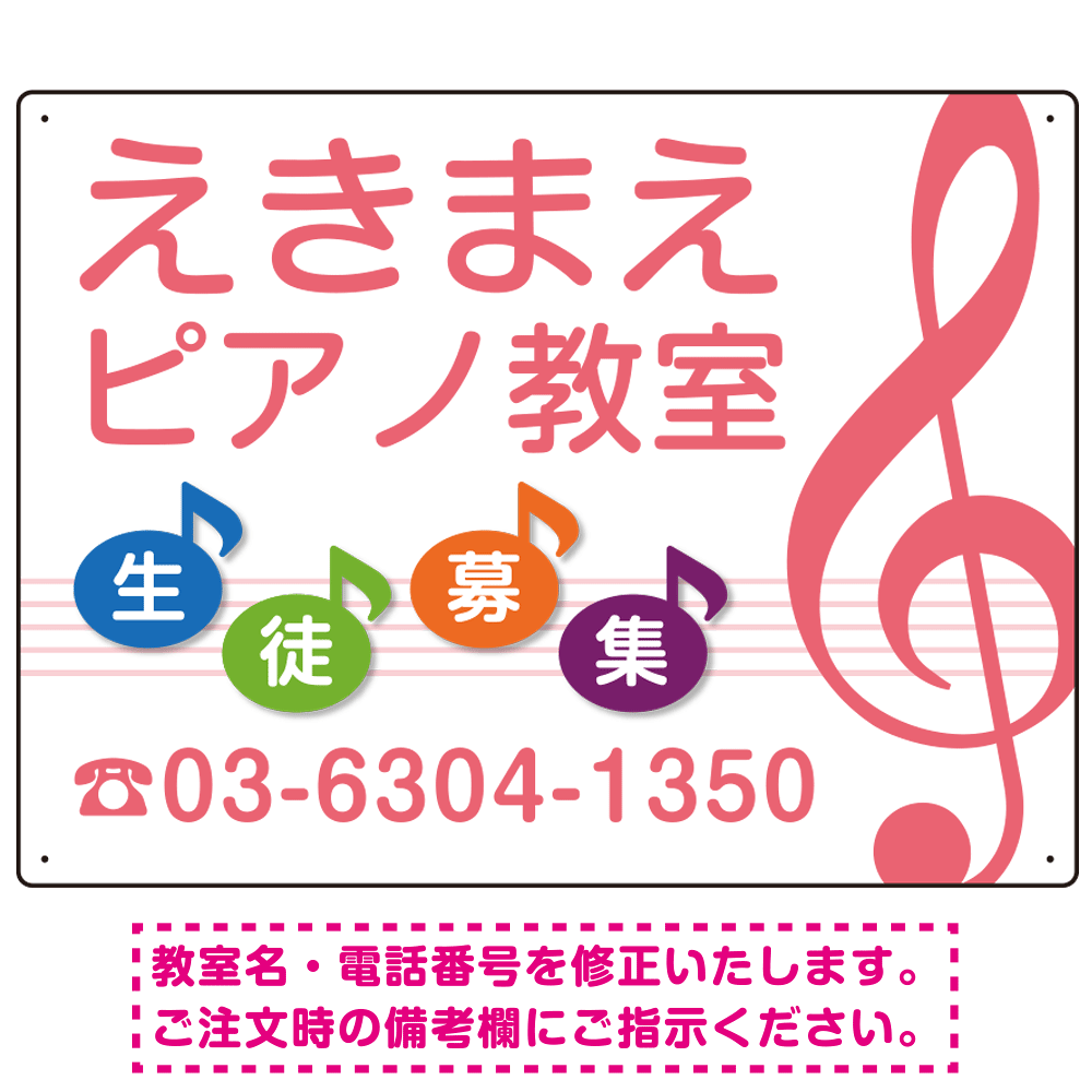 ピアノ教室 生徒募集 大きな音符イラストデザイン プレート看板 ピンク W600×H450 エコユニボード (SP-SMD452A-60x45U)