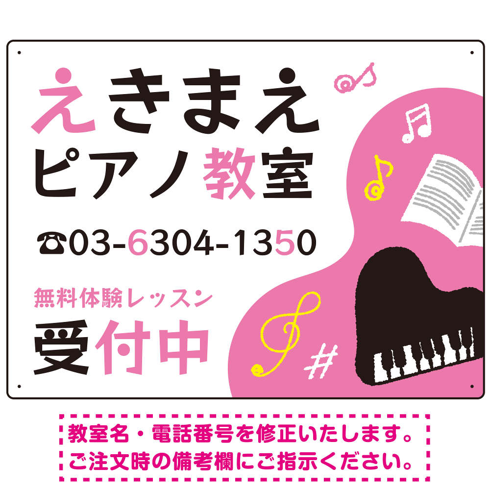 - ご希望の文字内容をご注文時の備考欄やメールやFAXにてご指示ください。※教室名・電話番号の修正費は料金に含まれております。