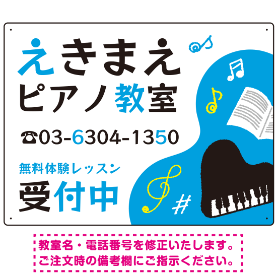 ポップでキュートなピアノ教室向けデザイン プレート看板 ブルー W600×H450 エコユニボード (SP-SMD444B-60x45U)